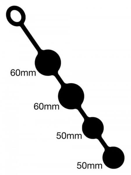 Feel the tantalizing sensation as each ball pops out of you one at a time from the large to extra-large. The Anal Balls LL XLXL has four balls, two larger than the other two. The four black rubbery-silicone balls are flexibly connected on a tough cord, with a finger loop for safe retrieval. Manufactured from FDA-approved silicone, the anal balls and cord are molded in one piece. The diameters of the large balls are 50 mm each and 60 mm on the two extra-large ones. The total length of the toys is 440 mm. These toys can be used with silicone or water-based lubes and anal relax products.