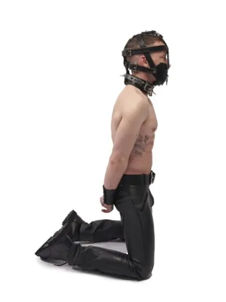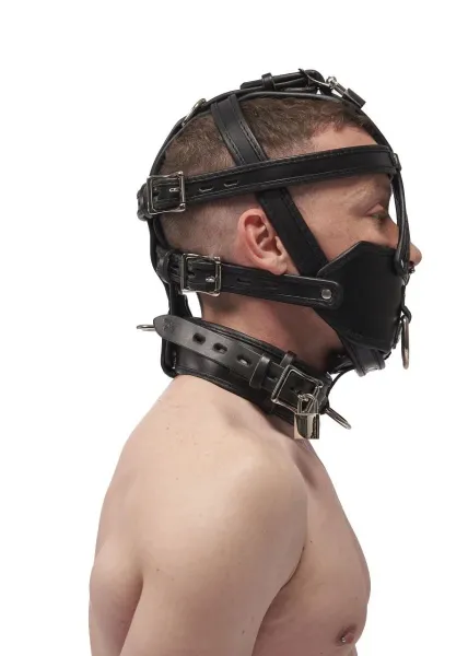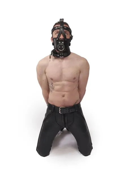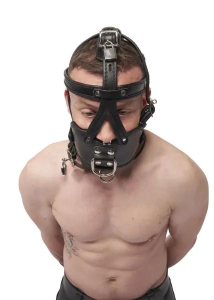 Four adjustable, thick leather straps around the head make this gear fit perfectly around anyone. Running along the top of the head, across the sides and around the neck, these straps create the kinkiest, submissive sensation.